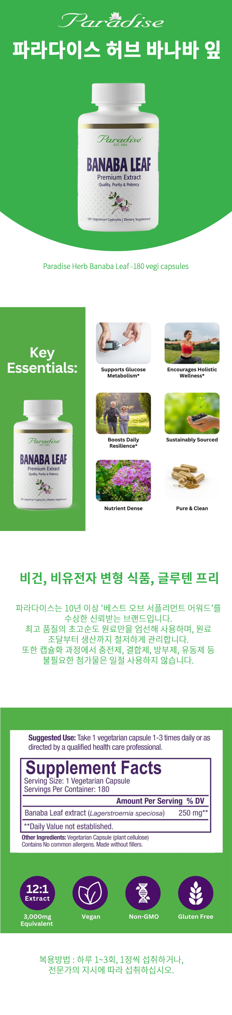 파라다이스 허브 바나바 잎 180 베지 캡슐